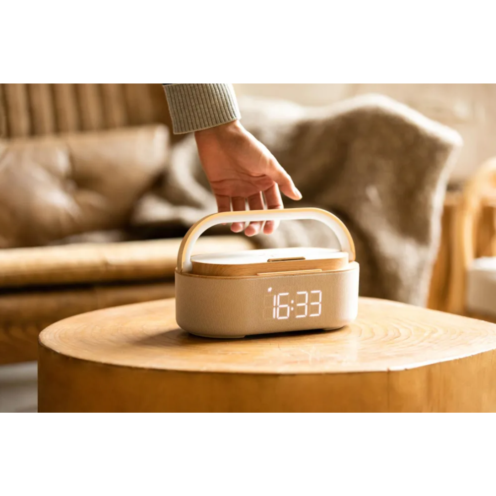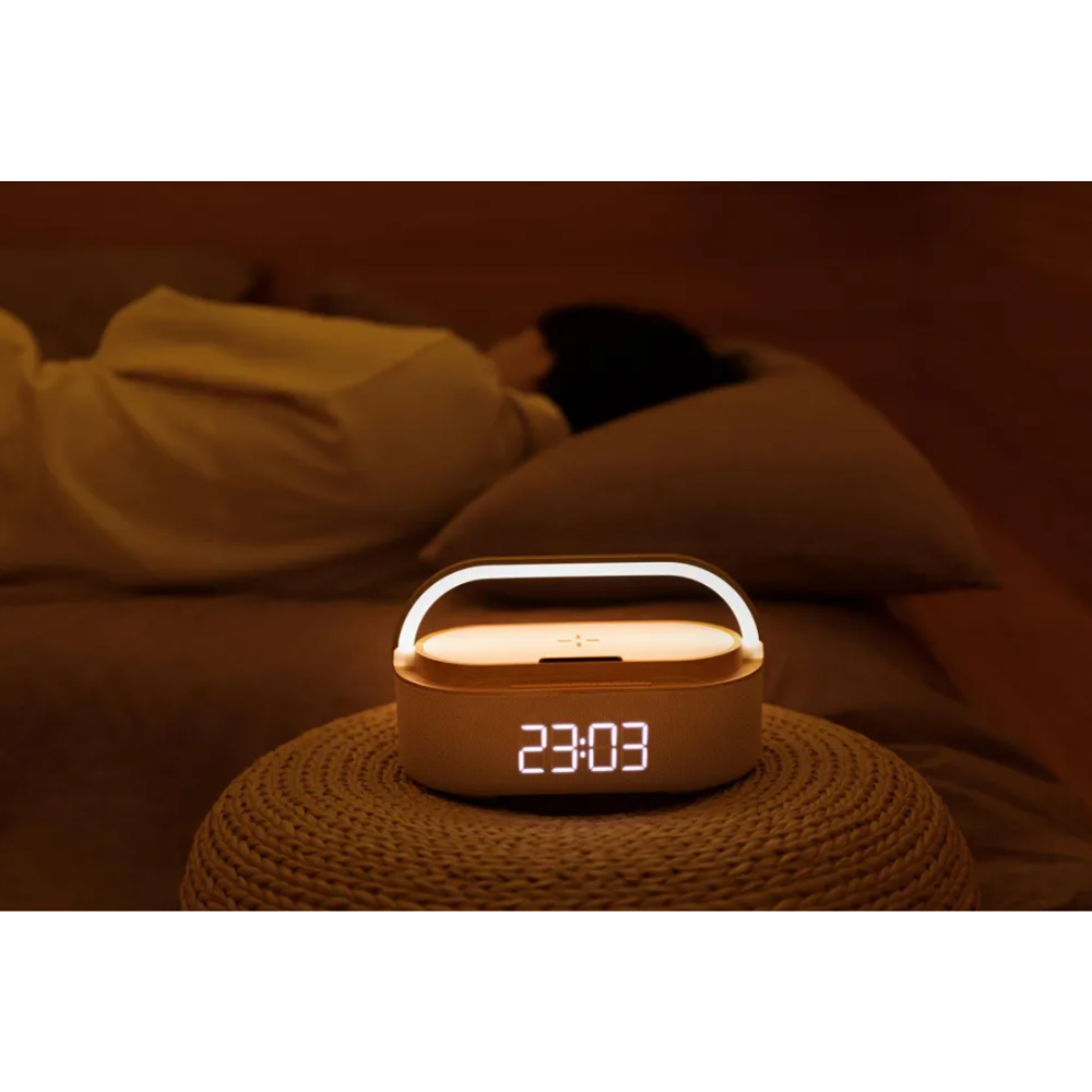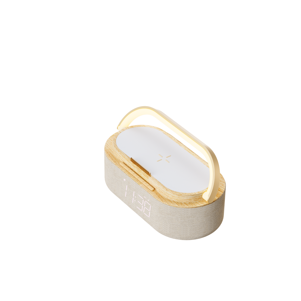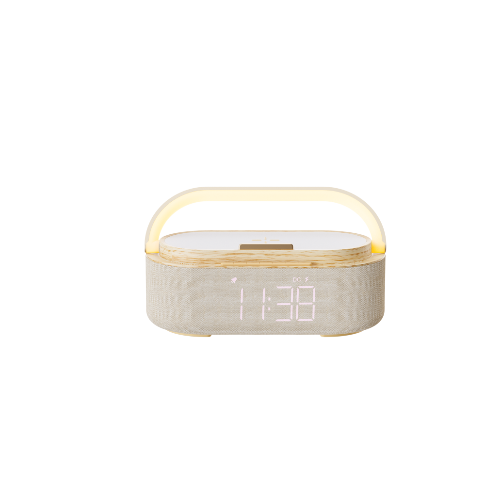 時計としての基本機能に加え、ワイヤレス充電、タイマー、アラーム、さらにはムードライトとしてお部屋の雰囲気を変えることができます。